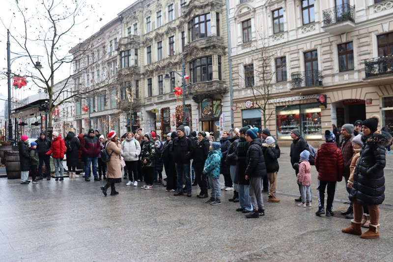 Kolejnym punktem programu było zwiedzanie ul. Piotrkowskiej z przewodnikami. Spacer pozwolił poznać jej fabryczne i artystyczne oblicze. Oprowadzający opowiedzieli ciekawostki o dawnej Łodzi przemysłowej oraz zwrócili uwagę na wyjątkową architekturę.